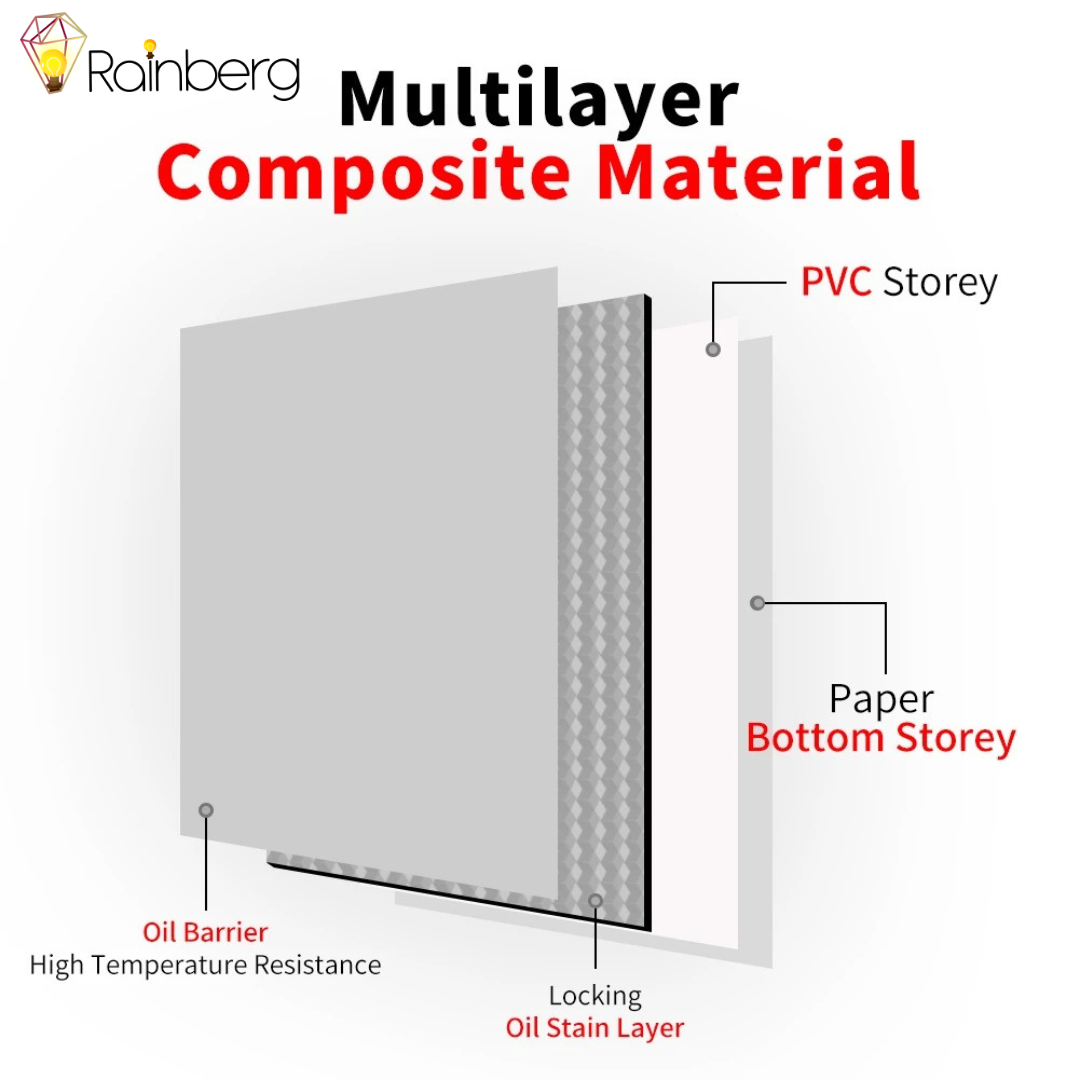 Made from plastic and aluminum foil, much stronger against fire than normal PVC sheets. Resistant to heat and moisture, Easy wipe to remove the stains!